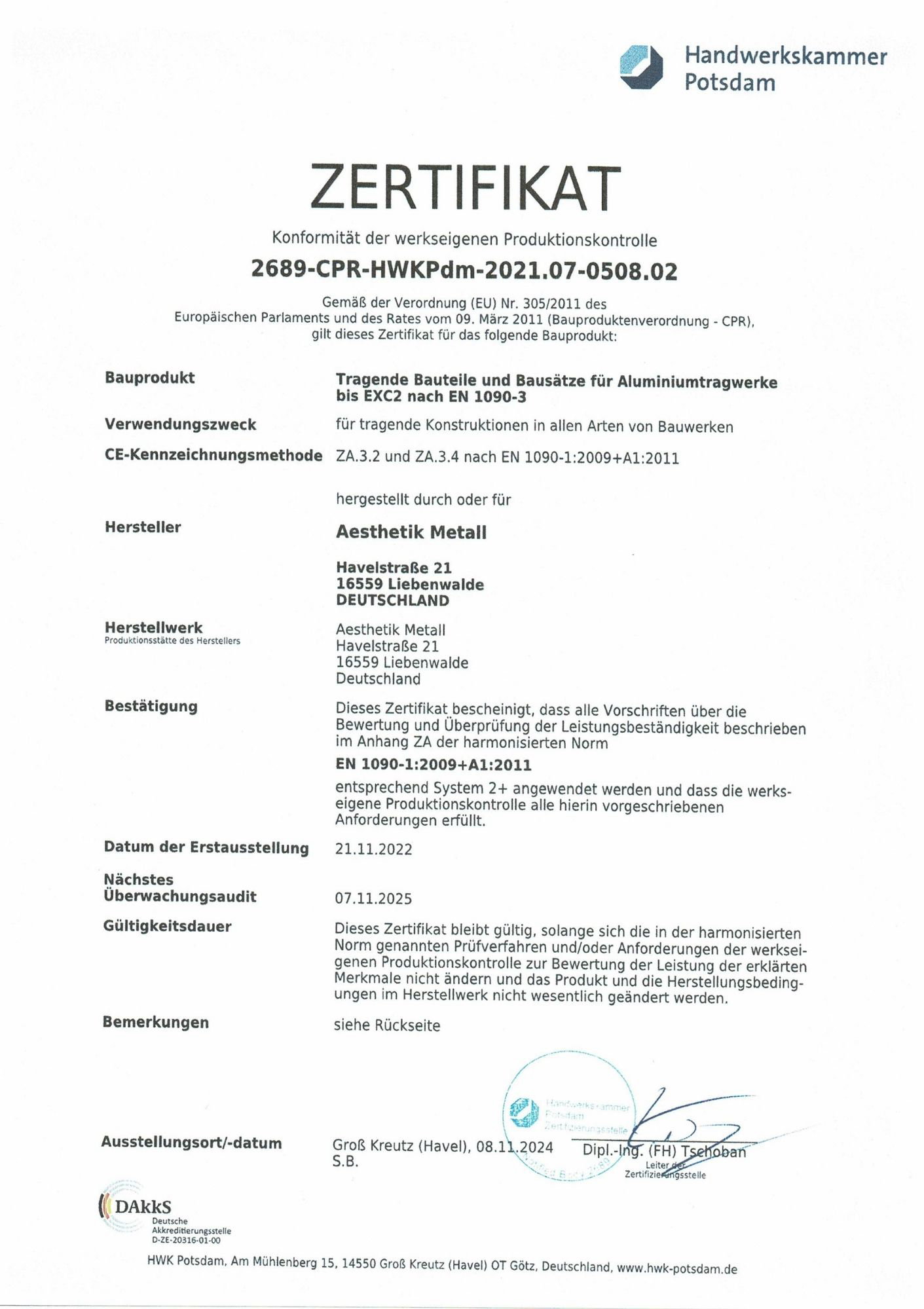 Tragende Bauteile und Bausätze für Aluminiumtragwerke bis EXC2 nach EN 1090-3