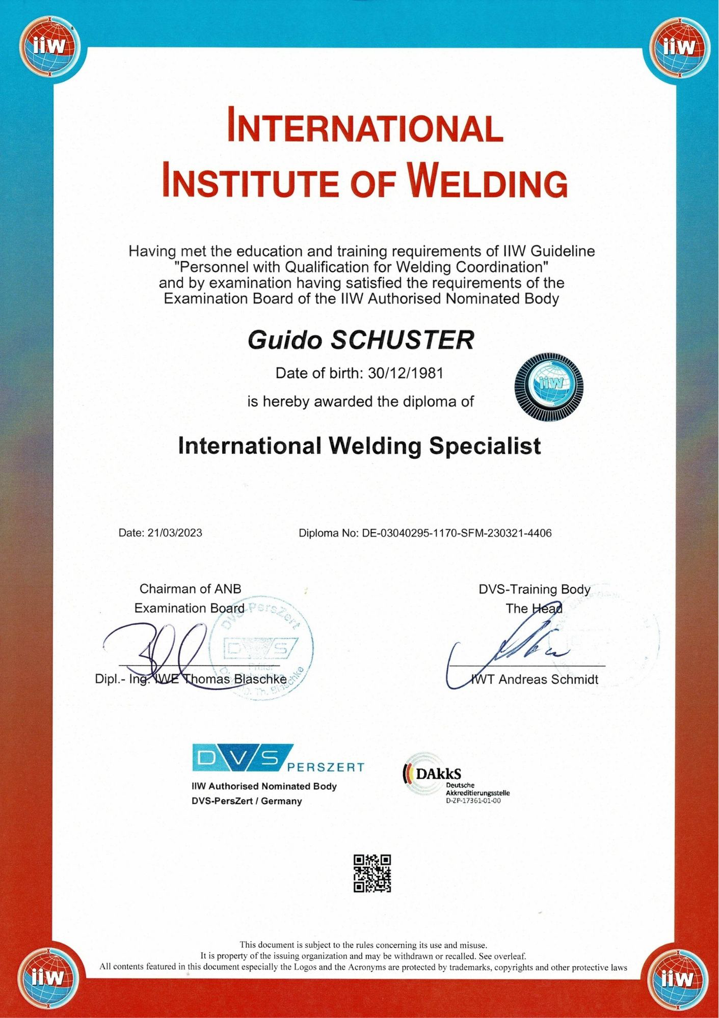 Erfüllung der Ausbildungs- und Trainingsanforderungen der IIW-Richtlinie „Mitarbeiter mit Qualifikation für die Schweißkoordination“